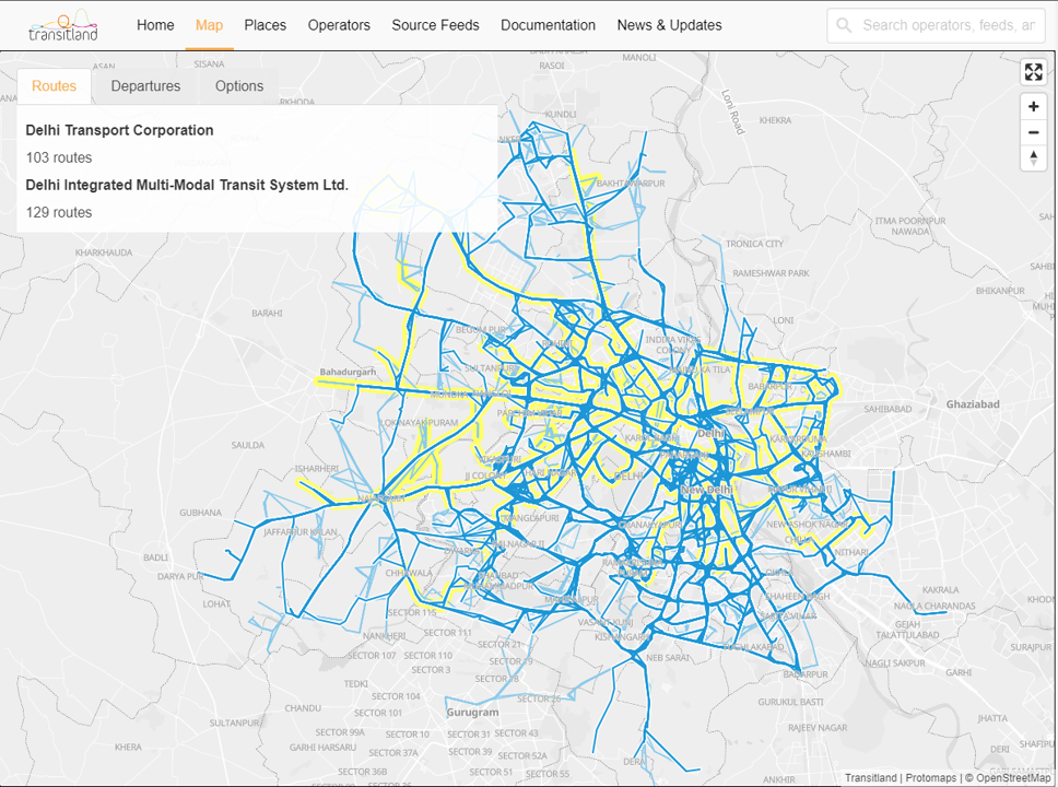 4. Indian Cities GTFS data: The Open Government Data Platform of India (https://data.gov.in/) offers a wide range of datasets, including public transport data. Cities such as Bangalore, Delhi, Kochi, Bhubaneshwar and Jaipur have their own portals for accessing public transport data.